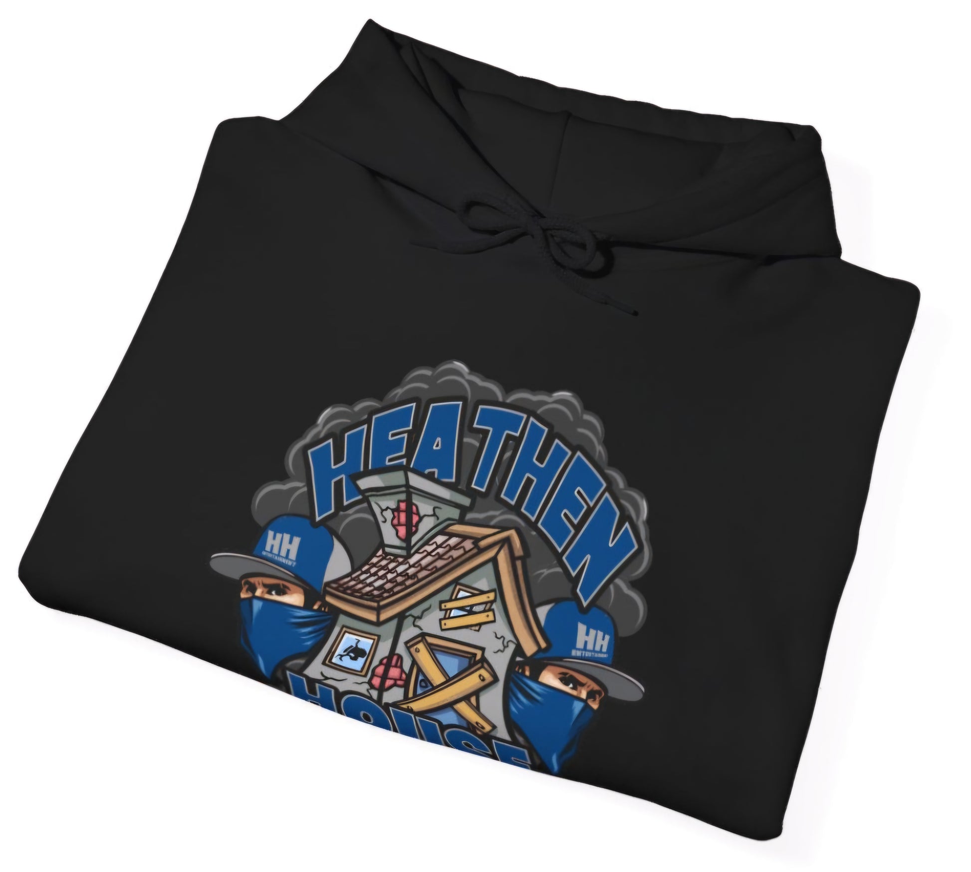 Make sure you grab yourself one of these official Heathen House Entertainment™hoodies in your favorite color! Shoot, grab a few for your freezing friends! Made with a thick blend of cotton and polyester, it feels plush, soft and warm, a perfect choice for any cold day. In the front, the spacious kangaroo pocket adds daily practicality while the hood's drawstring is the same color as the base sweater for extra style points.